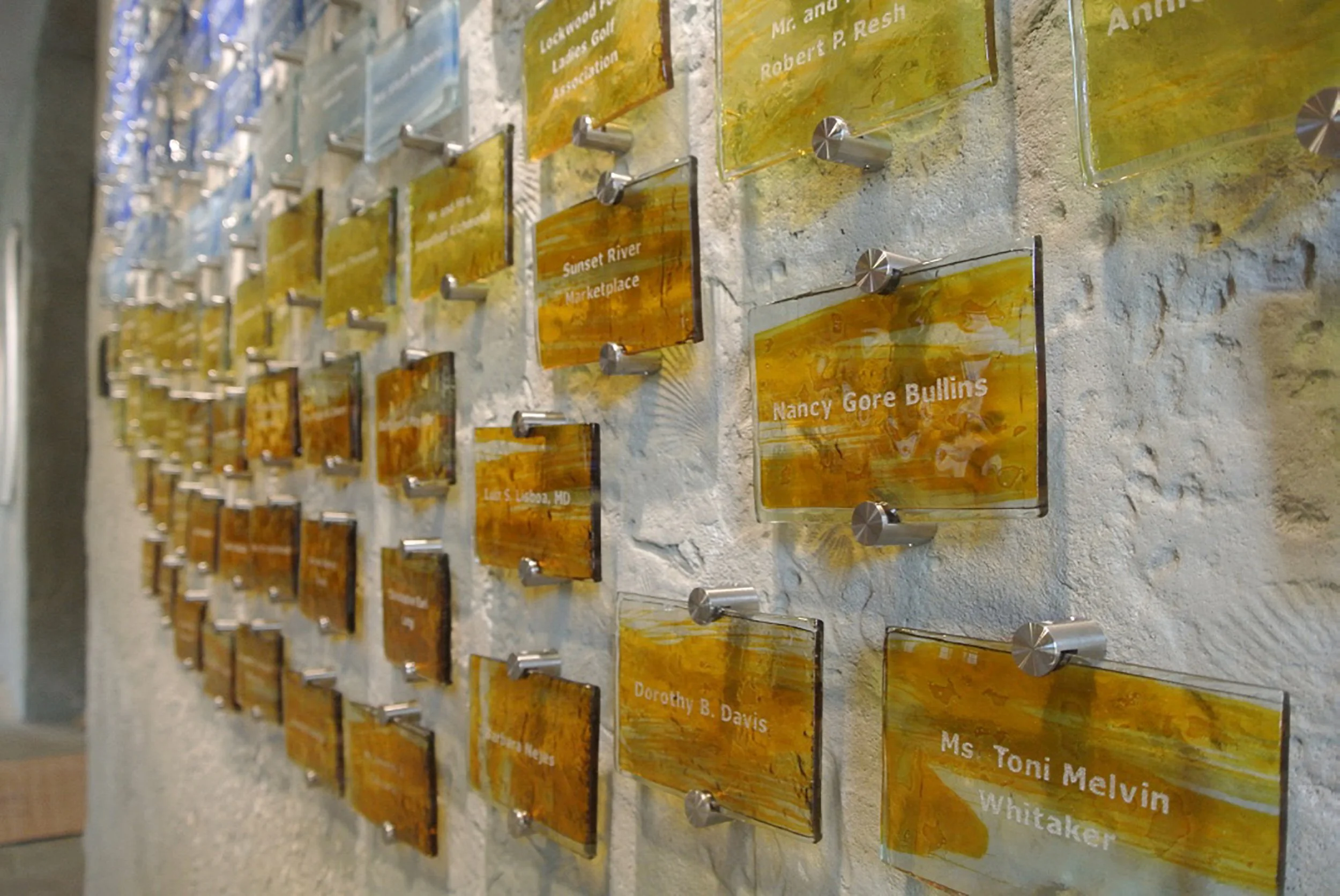 At Ellenburg and Shaffer, we believe that donor recognition is more than just a display - it’s a meaningful way to honor generosity, inspire future giving, and integrate philanthropy into the heart of your institution. With over 20 years of experience designing and fabricating custom kiln-formed glass installations, we specialize in creating donor recognition solutions that are visually stunning, deeply personal, and built to last.